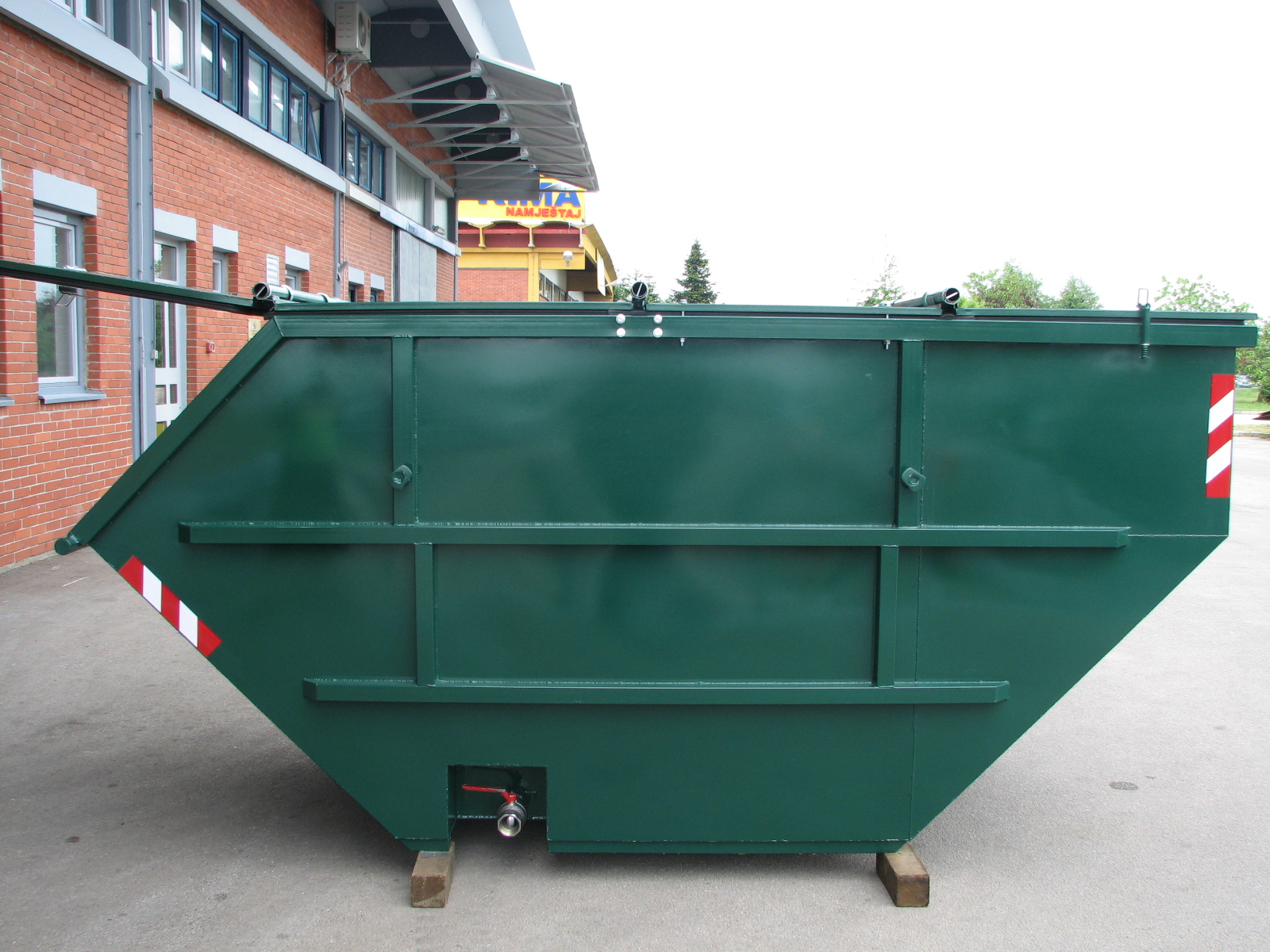 Ovi kontejneri su namijenjeni prikupljanju i odvozu kućnog, industrijskog, građevinskog i drugog otpada. Rade se u zapreminama od 5, 7 i 10 m kubnih. Standardni modeli kontejnera su otvoreni, u boji po želji kupca, izrađeni od čeličnog lima i pojačani čeličnim profilima. Standardna debljina stranica je 3 mm dok se pod izrađuje od lima debljine 4 mm. Kuke za kipovanje se izvode u skladu sa zahtjevom kupca a prema mehanizmu na vozilu koje kupac posjeduje (jedna ili dvije kuke).