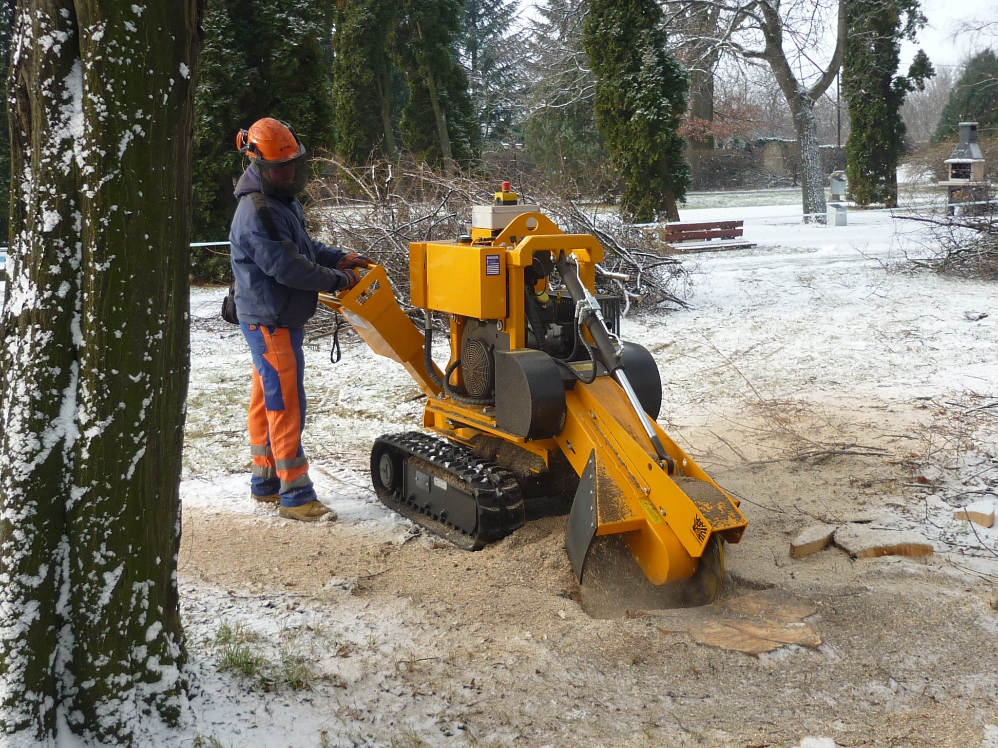 Grebač panjeva na šasiji sa gusjenicama i čvrstoj bazi. Šasija sa mogućnošću proširenja osigurava sigurnost i stabilnost mašine i osigurava rad na teško dostupnim terenima. Veoma je kompaktna i raznovrsna mašina sa niskim centrom gravitacije te veoma jednostavnom upotrebom i održavanjem. Može proći čak i kroz uske vrtne kapije široka samo 700 mm.