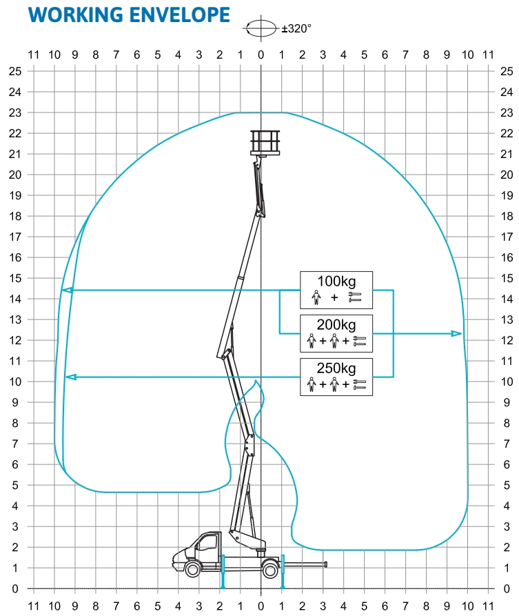 • 4 hidraulična stabilizatora sa senzorima pritiska na tlo, prednji stabilizatori izvlačivi, zadnji vertikalni